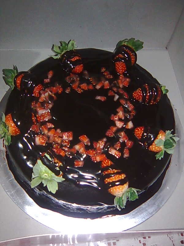 Sabtu malam saya terlalu penat.Niat dihati nak buat kek coklat moist utk adik ipar saya.Dia dh lama tak mkn kek ni.Ada request dari dia.So sempena besday dia bln ni saya buat utk dia.Tapi mata saya terlalu berat nak buka n badan terlalu berat nak bangun.huhuuhuh.....8.30 dah tido bersama2 anak2 yg tak tido ptg.Pagi nyer 6.30 Aqif dah kejutkan saya.Bangun terus ke dapur menyediakan kek coklat moist sebab ari Ahad nak balik ke Sg Petani.Jam 9 siap.Kek coklat moist bertoppingkan coklat ganache dan buah strawberi. Bila dapat pujian sedap,mula la tersenyum smpi ke telinga.hiihih...Saya rasa puas.Alhamdulillah....